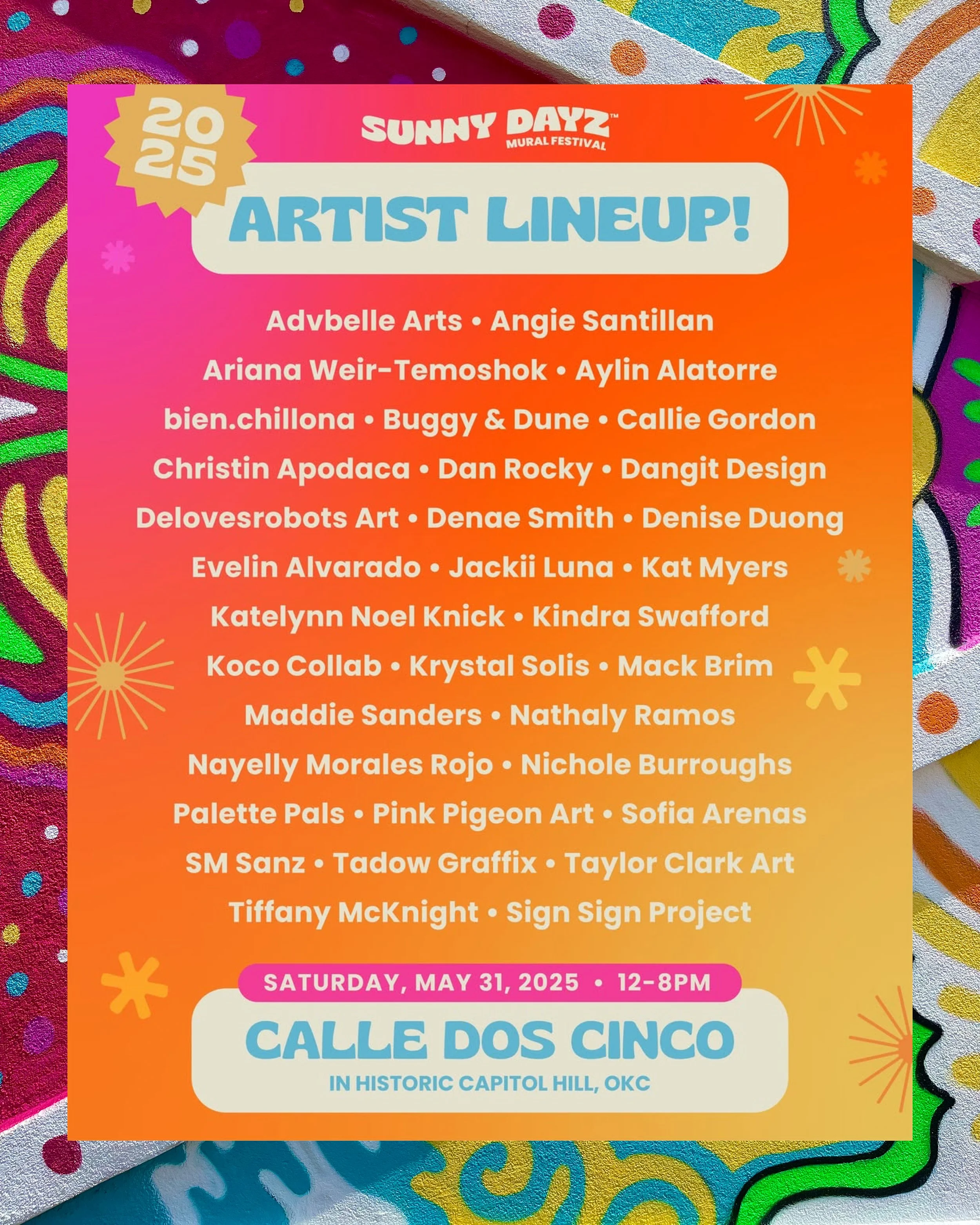 Mark your calendars for May 31 and join us for this year’s Fifth Annual Sunny Dayz Mural Festival to help support local artists and art organizations in our community that uplift, empower, and compensate artists with equitable wages.